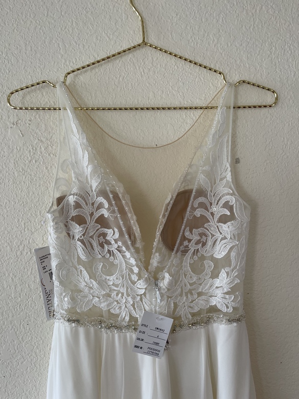 Galina Signature - applique illusion chiffon wedding dress size 4 - $600 - (25% OFF)