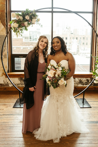 Mauve Birdy Grey bridesmaid dress in Gwennie style. Has pockets! Tag size is Medium, I'd say it fits like a 6/8. I did have it hemmed for me. I'm 5' 6" and wearing short heels, it skimmed the ground. Beautiful dress, photographs really well.