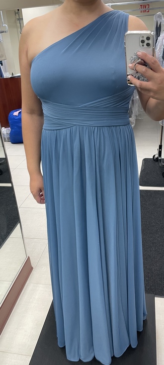 David’s Bridal - One-Shoulder Mesh With Full Skirt Steel Blue color size 14 - $90 - (40% OFF)