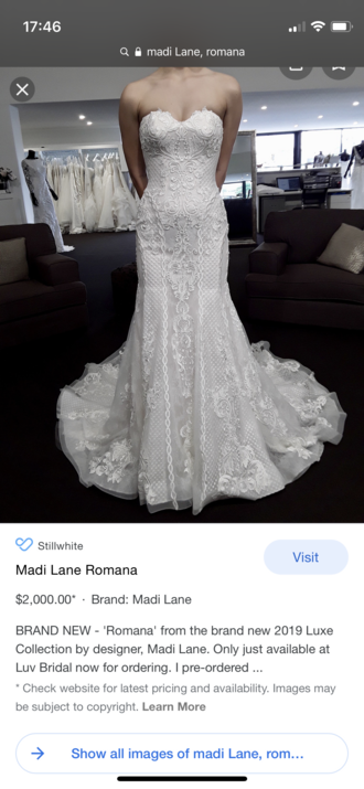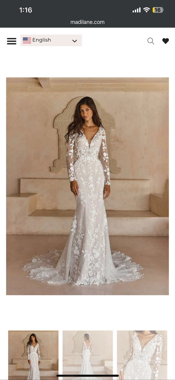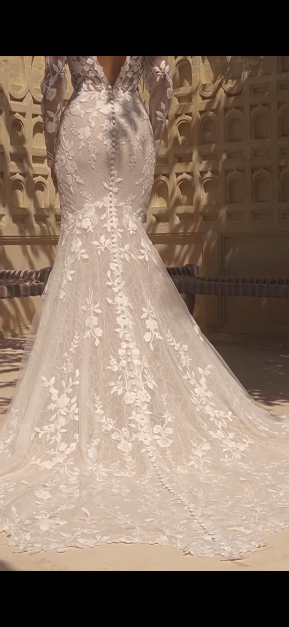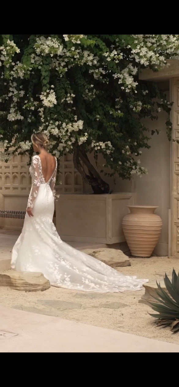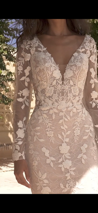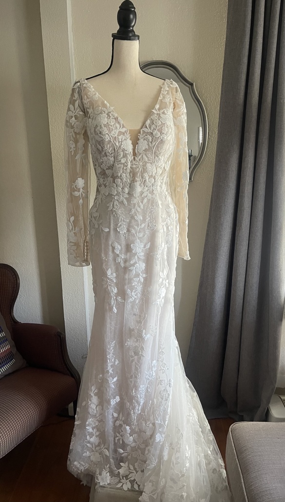Timeless and elegant. With detachable sleeves and 3D floral embroidery. Never worn. Made in 2025 new with tags!
