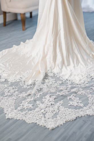 Patty’s wedding gown is a stunning and gorgeous wedding gown featuring an alluring, regal cape that will elevate a bridal look. A modern-day bride will fall head over heels in love with Patty wedding gowns. Adorned with hand-beaded lace bodice details highlighting 3D lace appliques, the sweet and exquisite details of Patty wedding gowns make them more desirable amongst our glam brides. The delicate beaded pinky rings are gracefully tucked along the hem of the cape where your hands will rest, creating a stunning effect for your walk down the aisle. From a wedding ceremony to a wedding reception, Patty is the best and top choice for any bride!