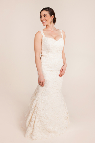 In the designer’s own words- "her wedding gowns are all about clean lines and luscious fabrics that incorporate French lace and decorative accents."