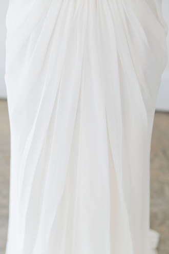 At first glance, the Loretta wedding gowns under the 2020 Fall Collection may seem rather simple, but we suggest you take another look at this marvelous style! And the moment you will have a second glance at this wedding dress we are pretty sure that you'll fall in love with the plunging, detailed neckline. It's a sheath wedding dress with a delicate, embroidered neckline.
