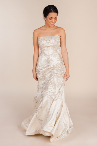 Lazaro wedding dresses are priced starting from $4,000. If you have always wished to look like a glam goddess at your wedding and fancy a designer Lazaro wedding gown, here’s your chance to claim yourself one! Borrowing Magnolia proudly brings to Lazaro preowned bridal gowns, that are stunning and affordable, all at once! These second-hand wedding dresses are perfectly preserved to give you that drop-dead-gorgeous look on your wedding day. While saving money on your wedding gown, you can add more to your wedding budget encompassing other things such as the decor or your honeymoon fund! Now, that’s called effective wedding planning.